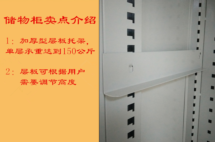 專為工廠儲物設(shè)計,外形美觀,結(jié)構(gòu)可靠使用安全靈活,立柱采用模數(shù)化設(shè)計,擱板按一定的模數(shù)活動配置,可存放不同大小尺寸的物料盒,擱板與立柱間的連接卡腳獨特的結(jié)構(gòu)設(shè)計保證了連接可靠性從而使置物柜整體具有很強的剛性。層板材料厚1.0MM,單層承重1OOKG。